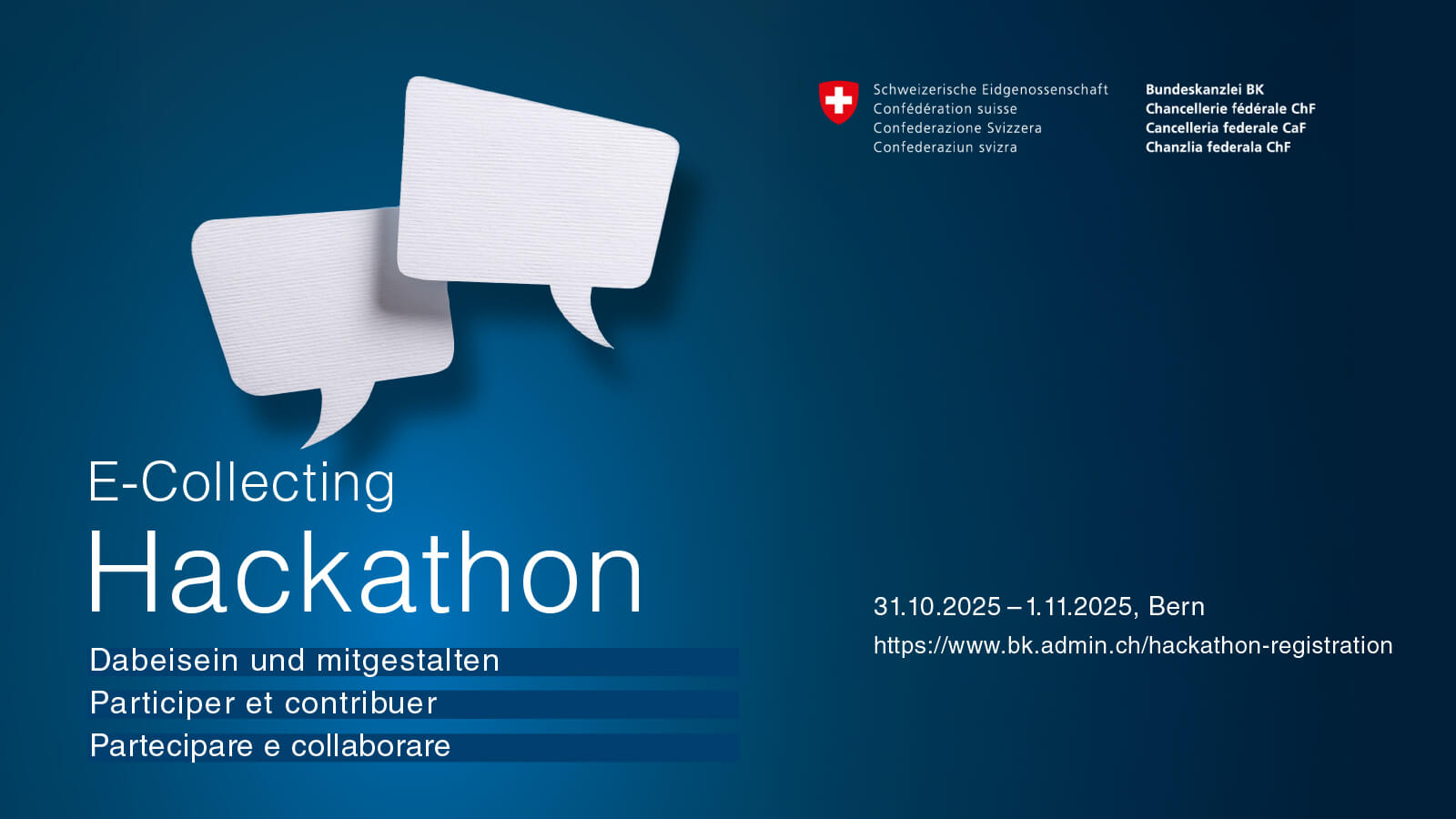 Am E-Collecting Hackathon der Bundeskanzlei (31. Oktober und 1. November 2025 in Bern) konzipieren und entwickeln wir Lösungen, um elektronisch Unterschriften für Volksinitiativen und Referenden zu sa...